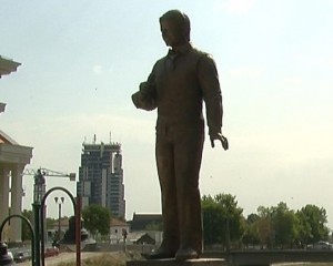 Сегодня у реки Вардар на Мосту искусств была установлена скульптура легендарного македонского певца Тоше Проески, которая расположилась прямо перед новым зданием прокуратуры.